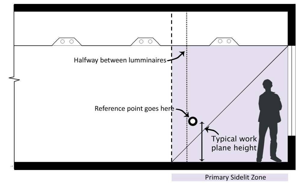•Identify the Reference Location; this is the location with lowest daylight illuminance in the zone illuminated by controlled luminaires.