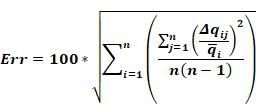 The second method, Equation 88, gives the rms of the percentage error in qi f each surfaces. This method increases the weight of smaller surfaces such as windows.
